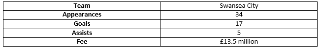 However, the 25-year old was simply superb for the Swans, scoring 17 goals for a poor Swansea City side this season.